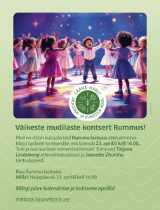 Meil on rõõm kutsuda teid Rummu lasteaia ettevalmistus-klassi õpilaste kontserdile, mis toimub 23. aprillil kell 16.00. Tule ja saa osa laste esinemisrõõmust! Esinevad Tatjana Lindebergi