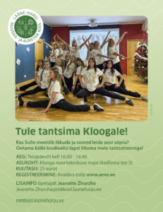 Kas Sulle meeldib liikuda ja soovid leida uusi sõpru? Ootame kõiki kooliealisi lapsi liituma meie tantsutrenniga! AEG: Teisipäeviti kell 16.00 – 16.40ASUKOHT: Lodijärve koolKUUTASU: 25