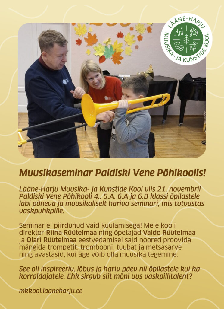 Lääne-Harju Muusika- ja Kunstide Kool viis 21. novembril Paldiski Vene Põhikooli 4., 5.A, 6.A ja 6.B klassi õpilastele läbi põneva ja muusikaliselt hariva seminari, mis tutvustas vaskpuhkpille.