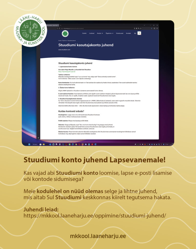 Juhendi leiad: https://mkkool.laaneharju.ee/oppimine/stuudiumi-juhend/